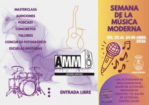 El Ayuntamiento de Villarrobledo, a través de la Concejalía de Juventud y el Aula de Música Moderna “Argimiro Martínez” (AMM), organiza el concurso de fotografía «Semana de la Música Moderna 2026» con el objetivo de fomentar la creatividad artística y destacar la importancia de la música moderna en la historia y cultura local.